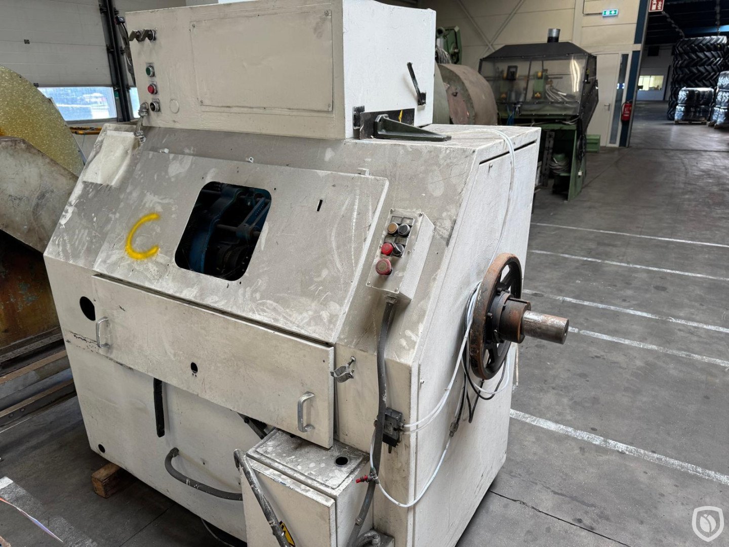 Pre-owned spin-flanging machine suitable for food, beverage or aerosol can production. This spin-flanger is a fully automatic six head machine which simultaneously spin flanges both ends of cans diameter Ø 73 mm received from a bodymaker, necker or separator.