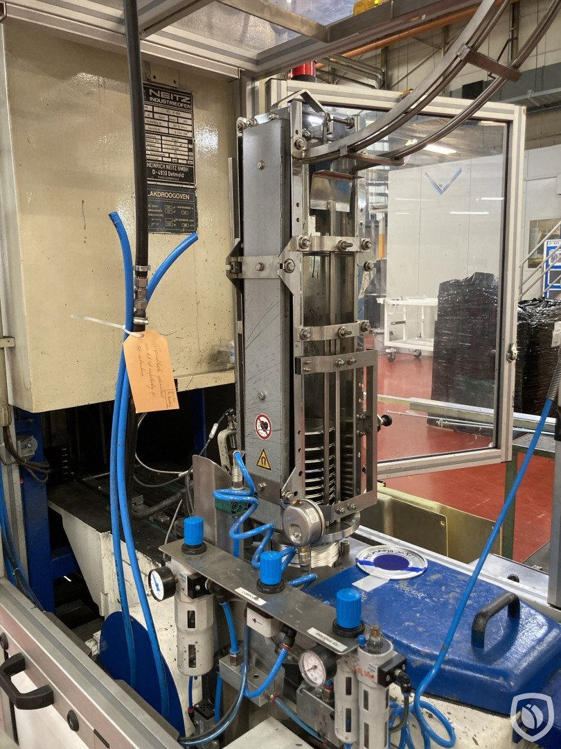 Engomadora IMC usada de calidad con control PLC y horno de secado vertical NEITZ DTTL con canjilones. Funcionando con gas y calentando hasta 155 gr celsius.