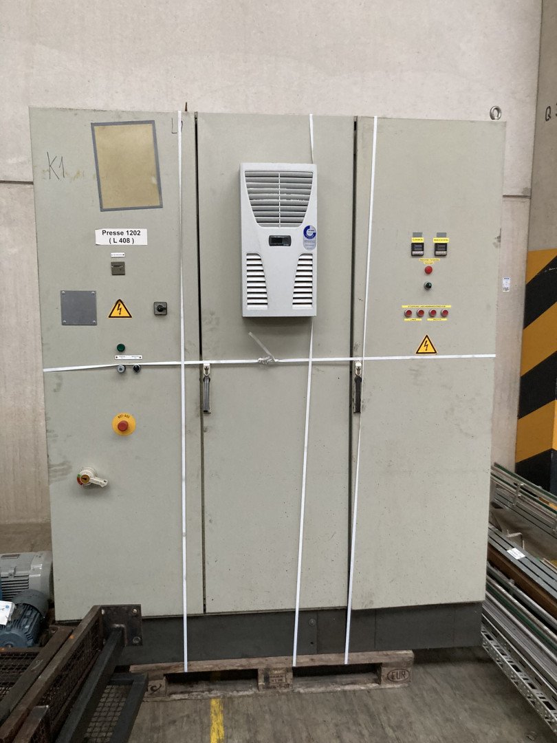 Prensa de doble carril usada de calidad para EOE (tapa de facil apertura) de 83 mm. El utillaje es STOLLE, también incluye bobinas para la tira de pestañas. La dimensión de la Placa de la Lengüeta es de 94,5 cm de ancho x 84,5 cm de largo.