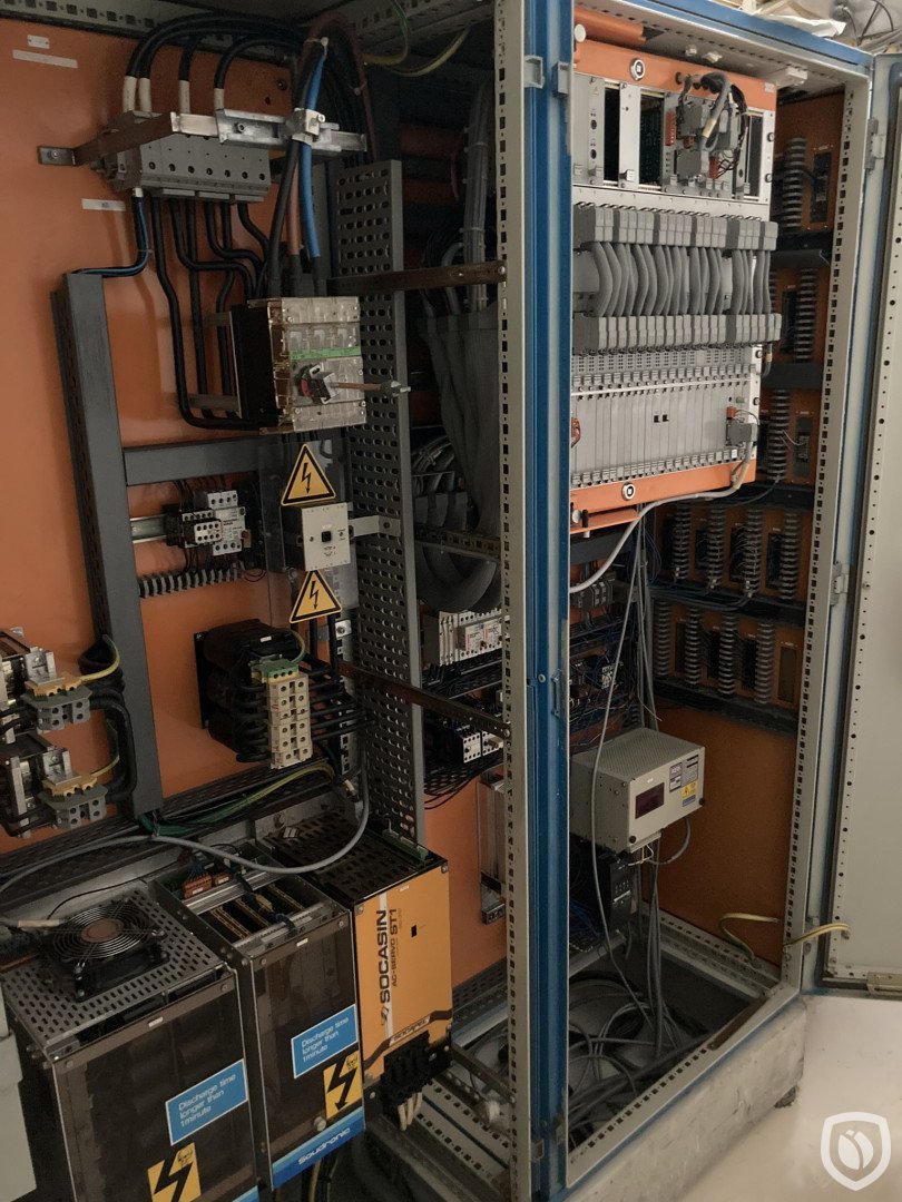 Soldadora usada de calidad, tipo FBB 5000, con sistema de aplicación de polvo Frei APC para la protección de la junta interior y unidad de barnizado de rodillo exterior. Incluye sistema de refrigeración por agua HYFRA y unidad Soudronic Discon.